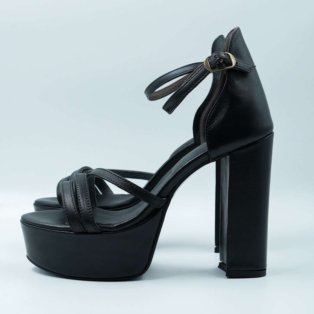 Women’s platform sandal with a block heel, crafted in smooth leather for an elegant and modern look. The crossed straps provide secure support, while the wedge sole ensures comfort and stability despite the height. A chic and feminine style, ideal for evenings and special occasions. Available in black. ✨