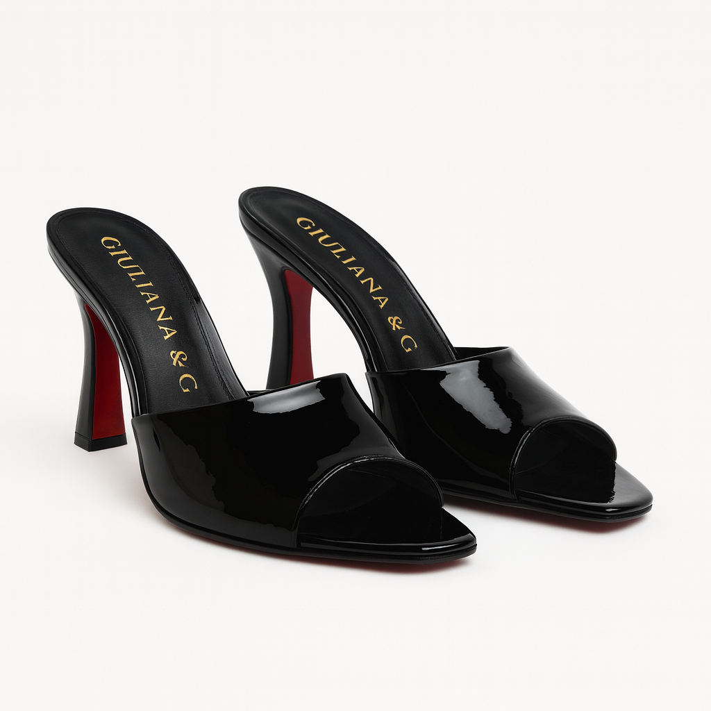 Elegant women’s mule in black, crafted with a smooth upper featuring a minimal and refined design.