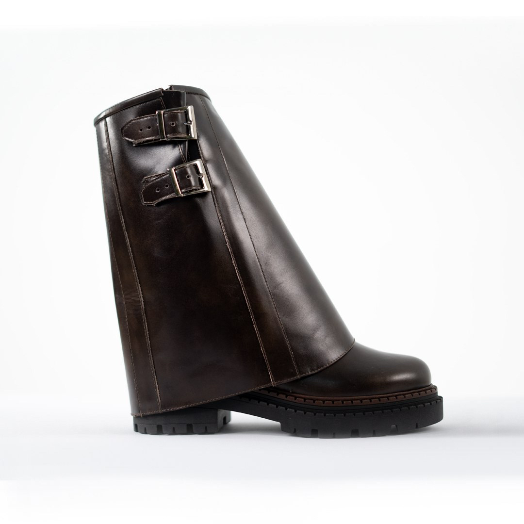 Brown ankle boot with a bold and structured design, created for a woman who loves to stand out with style.